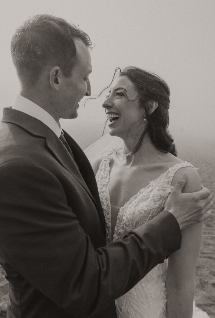 After the ceremony, we spent some time exploring Black Beach. The dark, moody sand paired so beautifully with Erin’s flowing gown and Colton’s classic suit. Fog rolled in off the lake, wrapping them up in this almost cinematic, surreal scene. They walked barefoot along the shore, sharing quiet kisses and bursts of laughter as the waves lapped at their feet. I watched them skip stones, twirl each other, and just be—letting the day unfold without any pressure or timeline.
