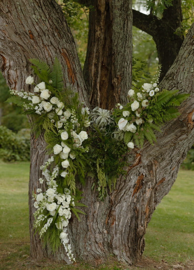 Okay—let’s talk about the reception because wow. The details were just immaculate. We’re talking soft natural greenery paired with delicate white florals, touches of sparkle from dainty disco balls overhead, and the most adorable surprise: each table had its own mini “Just Married” cake. Yes, really. It felt like a modern garden party met a lakeside disco, and the vibe was just right.