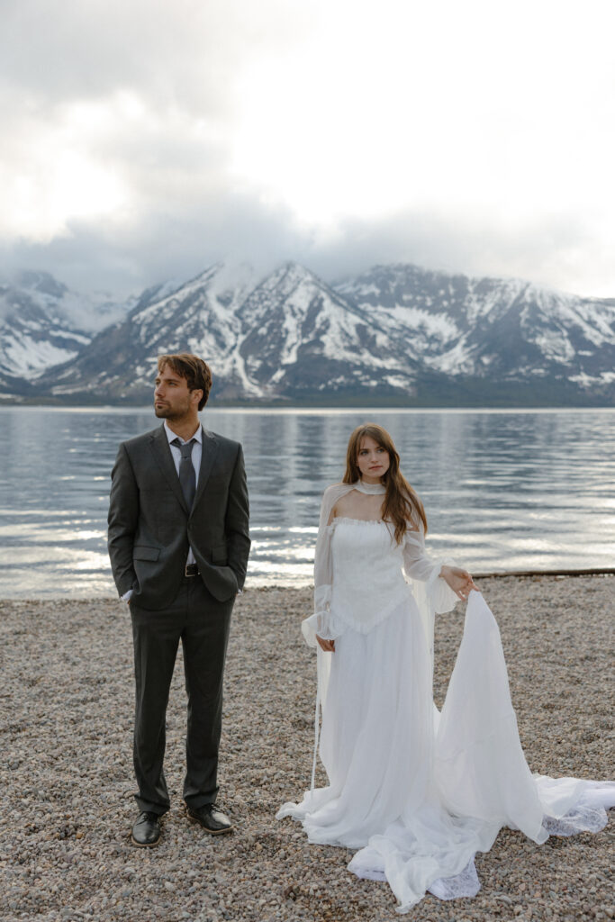 They wanted something more personal, something that felt like them. That’s how they landed on a moody lakeside elopement at Colter Bay — intimate, quiet, and deeply connected to a landscape they love.